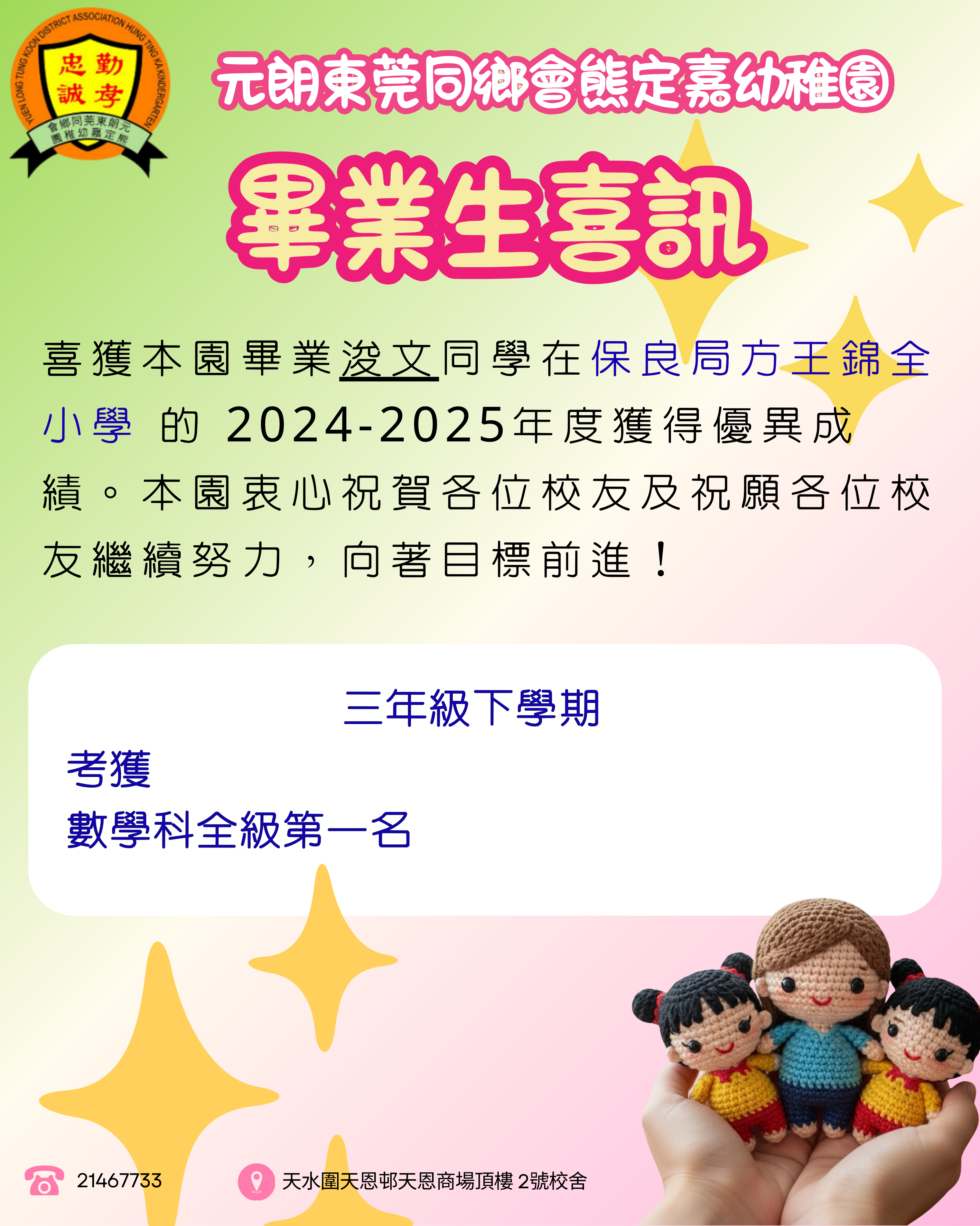 Yuen Long Tung Koon District Association Hung Ting Ka Kindergarten